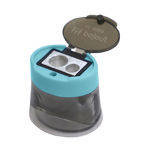 - Afia plástica de 2 bocas, com afia dupla metálica