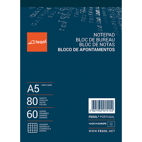 • BLOCO APONTAMENTOS A5 FEGOL 80FOLHAS XADREZ