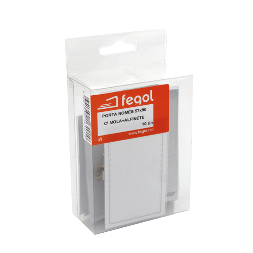 Porta nomes em plástico transparente rígido com mola metálica,alfinete a abertura de encaixe no verso que facilita a introdução ou remoção de cartões. Inclui cartão.
