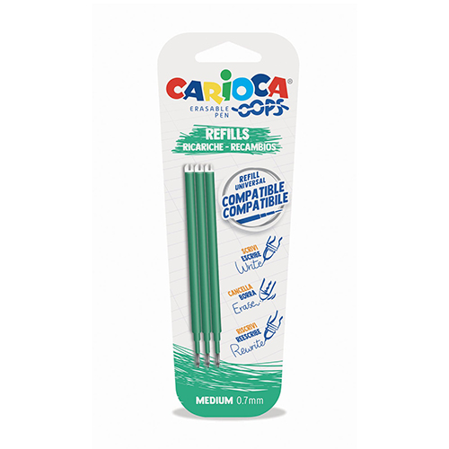Ref. Fabricante: CariocaPonta: 0,7mmModelo: OopsQuantidade: Blister de 3 unidadesCor: Verde