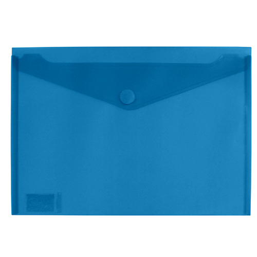 Cor: AzulBolsa em plástico transparente mate tipo envelope com abertura no topo.Fecho em velcro redonda plástica sobre pressão.Para documentos formato A4.Disponível em várias cores translúcidas.