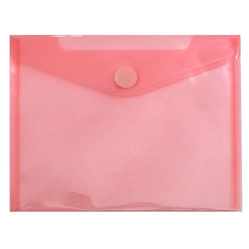 Cor: VermelhaBolsa em plástico transparente mate tipo envelope com abertura no topo.Fecho em velcro redonda plástica sobre pressão.Para documentos formato A5.Disponível em várias cores translúcidas.