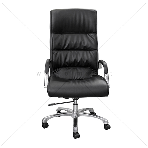 • Cadeira de escritório em PU (tipo pele), com costa alta, assento regulável e 5 rodizios com travão
