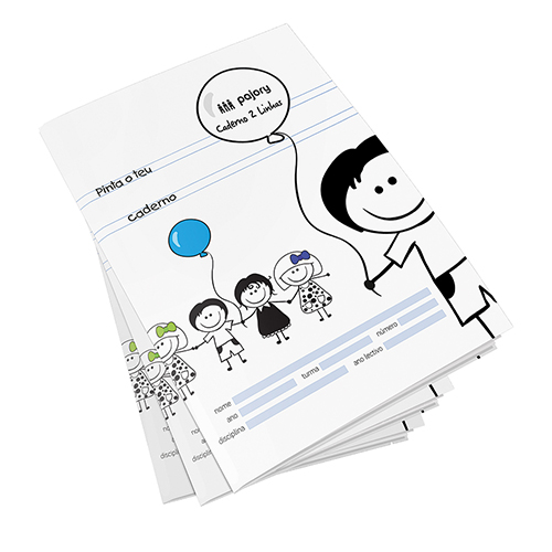 Modelo: 2 LinhasFormato: A5Nº de Folhas: 20Espessura: 60g/m2- Caderno agrafado em papel branco, com 2 linhas com margens- Ideal para utilizar no primeiro ano escolar para aprender a escrever ou melhorar a caligrafia- Capa em cartolina colorida impressa