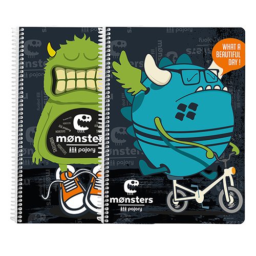 Caderno espiral com capa PP A4 Monsters quadriculado• Marca: Pajory• Modelo: Monsters• Formato: A4• Nº de folhas: 80• Tipo de paginação: Quadriculado (Xadrez)• Tipo de lombada: EspiralCaderno capa pp com espiral, folhas em papel de 80g/m2, com margem dupla e cantos arredondados.Disponível em 2 motivos.