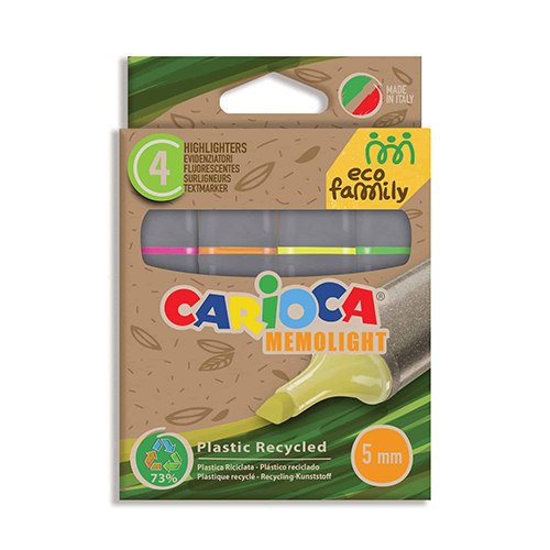 CAIXA 4 MARCADORES FLUORESCENTES CARIOCA ECO SORTIDOS (43098)