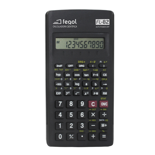 • Ref. fabricante : FL-82• Tipologia : Científica• Alimentação : Pilha (LR44)• Medidas : 76x136x15mm (LxAxP)• Peso : 96grCalculadora escolar com visor de 2 linhas (exibe problema e resolução ao mesmo tempo) com matriz de pontos na linha superior, LCD na linha inferior.Teclas em plástico, tampa rígida protectora, com auto power off.Inclui várias memórias, função de repetição multipla, cálculos estatísticos e fraccionários, combinações e permutações, e outras funções.10 dígitos.