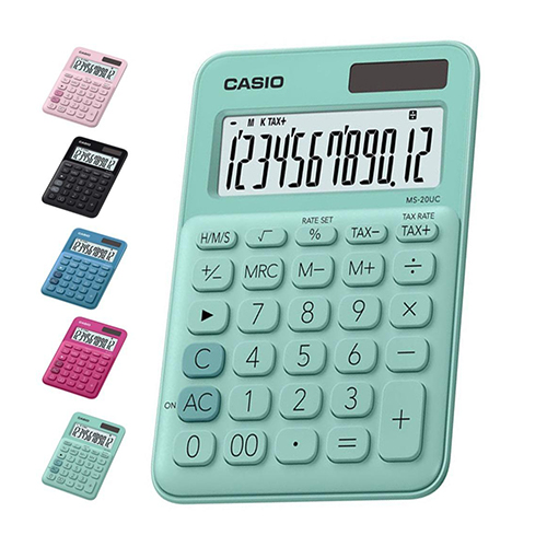 Ref. Fabricante: MS-20UCCores: SortidoCalculadora de secretária compacta com cálculo de taxas,- Visor de 12 dígitos- Cálculo de tempo- Função "roll-over" para uma introdução rápida dos números- Visor de grandes dimensões- Tamanho compacto- Duas fontes de alimentação- Cálculo de taxas- Sinal mais/menos- 3 casas decimais- Corpo de plástico