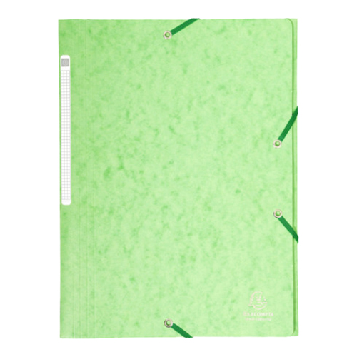 • REF • 17122E• FORMATO • A4• MEDIDAS • 24cm X 32cm• MODELO • Com 3 Abas e Elástico• COR • Verde Claro- O cartão brilhante usado pela Exacompta e fabricado pela Clairefontaine.- Graças a uma estrutura homogênea em novas fibras é mais resistente, mais rígido e mais durável, como um couro bonito.- Cartão brilhante 425 g/m²- 24x32 cm para A4.