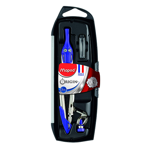 Ref. Fabricante: 305811Modelo: OriginDiâmetro: 330mmCores: Vermelho ou AzulApresentação: Estojo com 3 peçasQuantidade: Expositor com 10 estojosOutbox: 100- Compasso técnico metálico de grande precisão- Com adaptador universal, mina de 2 mm- Inclui tubo de minas