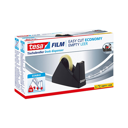 O Desenrolador de secretária Easy Cut Economy tesa é a solução clássica para fita adesiva, perfeito para a casa ou escritório. Pode recarregá-lo com qualquer rolo de fita adesiva, desde que este tenha um diâmetro até 7,6 cm e combine com qualquer tesafilm de largura até 25mm e comprimento até 66m. O mecanismo prático de encaixe permite recarregar a fita com toda a simplicidade. A lâmina de serrilha garante cortes precisos, contribuindo para uma aplicação elegante em documentos, presentes, ramos de flores e embalagens. A base antiderrapante dá lugar a uma construção sólida e operações fáceis.