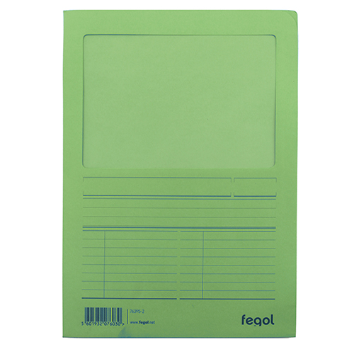 • REF: 76395-4• MODELO: Protocolo• FORMATO: Din A4• MEDIDAS: 310 x 220mm• COR: VerdeDossier fabricado em cartolina de 140grCom o lado direito e superior abertoJanela ampla em papel translúcidoA capa inclui uma quadrícula, para identificação do conteúdoDisponíveis em 5 cores (amarelo, azul, cinza, verde e vermelho)