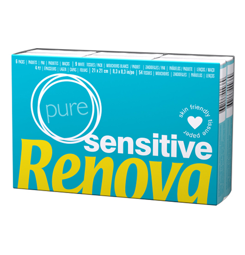 Renova Sensitive são lenços extra-suaves e resistentes.A sua textura absorvente resulta de uma seleção única de delicadas fibras naturais e bio-degradáveis.De utilização única, estes lenços ajudam a limitar os riscos de infeção.