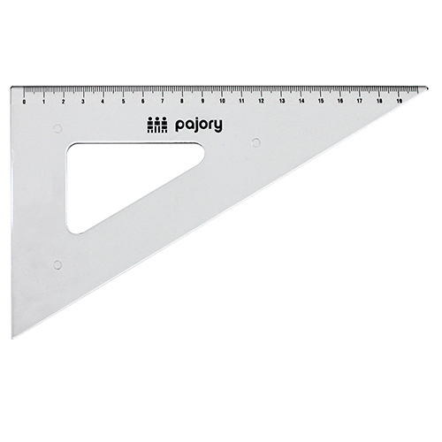 Ref: Fornecedor: 10-20Graduação: 60ºHipotenusa: 21cmCor: Cristal TransparenteEsquadro em poliestireno transparente com graduação lateral(apenas em 1 dos lados)Arestas biseladas e plástico cristalino de boa qualidadeEspessura de 2-2,5mm e escala de 1mm