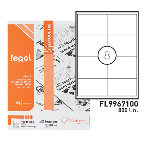 Nº de folhas: 100Medida da Etiqueta: 99 x 67mmNº Etiquetas por Folha: 8