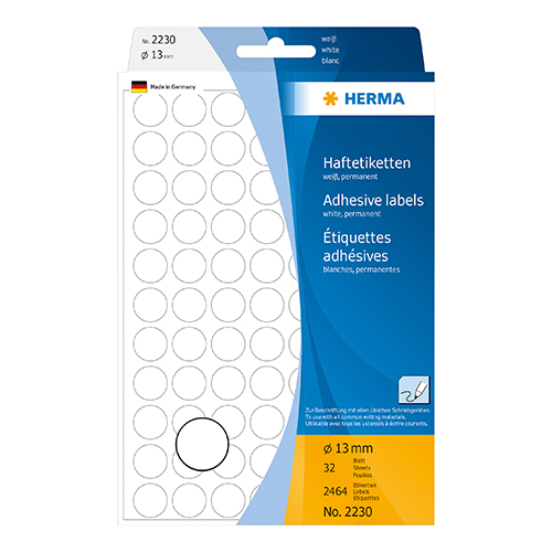 • Referência : 2230• Medidas : 13mm "Redondas"• Cor : Branco• Quantidade : 32 Folhas com 77 etiquetas = 2464