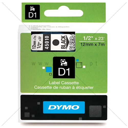 • Referência : 45010 | S0720500• Modelo : D1• Cor da Fita : Transparente• Cor da Escrita : Preto• Largura : 12mm• Comprimento : 7mts- Fitas Amovíveis, para várias superfícies- Remoção fácil do revestimento posterior para uma rápida e simples aplicação- Não deixa resíduos do adesivo ao remover- Resistente à àgua e aos raios UV- Resistente a temperaturas entre -18º e 90º C
