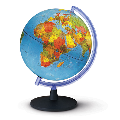 Ref. Fabricante : 782702 (F25)Modelo : FalconDiâmetro : 25cm | 10"Tamanho : 36cm | 14Escala : 1:51.000.000Lâmpada : 40WGlobo geográfico luminosoApagado - cartografia físicaAceso - Cartografia PolíticaBase em plástico pretoSemi-meridiano em plástico transparente