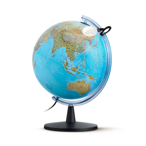 Ref. Fabricante: 782702Modelo: FalconDiâmetro: 30cm | 12"Tamanho: 40cm | 16"Escala: 1:42.500.000Luz: 40WGlobo geográfico luminosoApagado - cartografia físicaAceso - Cartografia PolíticaBase em plástico pretoSemi-meridiano em plástico transparente