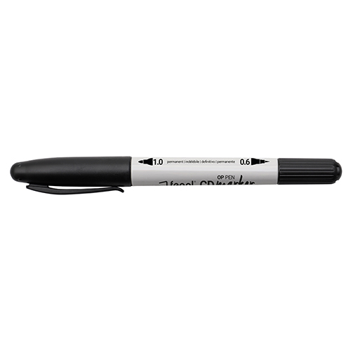Cor : Preto- Marcador permanente universal de duas pontas (fina e média).- Resistente à água e à sujidade, tinta sem odor de secagem rápida.- Corpo em PP, tampa da cor da escrita.