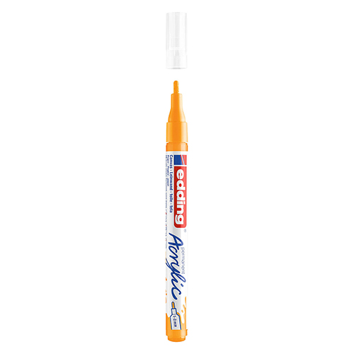 Cor : AMARELO SOL (LARANJA)-O marcador de acrílico edding complementa a gama de acrílico.-Ponta fina tipo bala com largura de curso de 1-2 mm.-É o produto certo para expressar sua criatividade sem esforço em áreas menores ou adicionar detalhes a superfícies maiores que tornarão sua obra de arte única!-A tinta contém tinta acrílica permanente, resistente à luz e altamente pigmentada.-A paleta de cores contém 20 cores.-A sua luminosidade e efeitos irão inspirá-lo!-Estão disponíveis em três diferentes graus de cobertura (opaco, semi-opaco e transparente), permitindo uma grande variedade de técnicas de pintura.