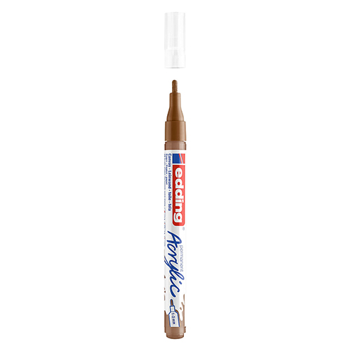 Cor : AVELÃ (CASTANHO)O marcador de acrílico edding complementa a gama de acrílico.Ponta fina tipo bala com largura de curso de 1-2 mm.É o produto certo para expressar sua criatividade sem esforço em áreas menores ou adicionar detalhes a superfícies maiores que tornarão sua obra de arte única!A tinta contém tinta acrílica permanente, resistente à luz e altamente pigmentada.A paleta de cores contém 20 cores.A sua luminosidade e efeitos irão inspirá-lo!Estão disponíveis em três diferentes graus de cobertura (opaco, semi-opaco e transparente), permitindo uma grande variedade de técnicas de pintura.