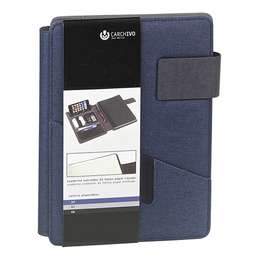 Referência 23010009Modelo: VentureFormato: A4Dimensões: 315mm x 235mmCor: AzulPasta de documentos A4 Venture denim a cores. Suporte para tablet de 9,7 ".Vários bolsos para Smartphone, carregador, cabos, fones de ouvido, documentos, cartões de visita e porta-canetas. Bloco de papel quadriculado de 80gr com 4 furos. Laço de fecho magnético oculto.