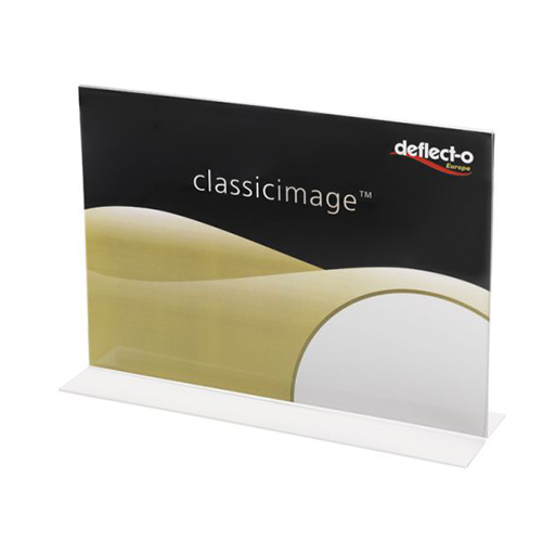 Ref. Fabricante: DE47701 TP CS TPFormato: A4 em forma de "T" HorizontalCor: TransparentePorta folhetos de balcão.Em forma de T.Formato vertical.Visível dos dois lados.O documento coloca-se pela parte inferior.