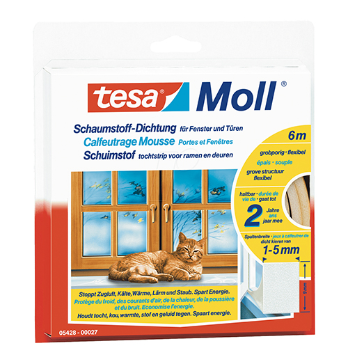 Ref. Fabricante: 05428Gama: Tesamoll®Dimensões: 6m : 9mm : 6mmCor: BrancaTesamoll® Perfil Espuma Universal