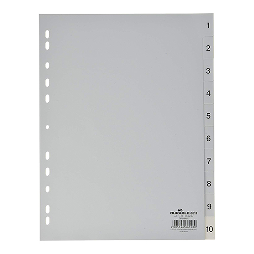 SEPARADOR PP A4 10 POSIÇOES DURABLE 6511 NUMERADO CINZA