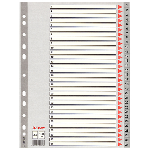 SEPARADOR PP A4 31 POSIÇOES ESSELTE 100108 NUMERADO CINZA