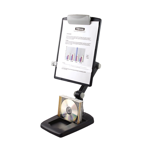 Ref. Fabricante: 9169801Marca: FellowesCor: GrafiteDimensões: 50,80 x 23,17 x 25,40 cm (A x L x P)Peso do Item: 2,63 KgTipo de material: HPS- Suporte de braço para documentos, com base- Braço flexível ajusta para altura e ângulo de visão ergonomicamente corretos- A placa do suporte de documentos gira 90 ° para o posicionamento de retrato ou paisagem- O guia da linha desliza para cima e para baixo ou oscila para fora do caminho quando não está em uso- A base oferece estabilidade e mais espaço de armazenamento para 3 CDs e notas autoadesivas- O clipe de cópia é ajustado para acomodar documentos A4 e formulários amplos- Capacidade para até 150 folhas