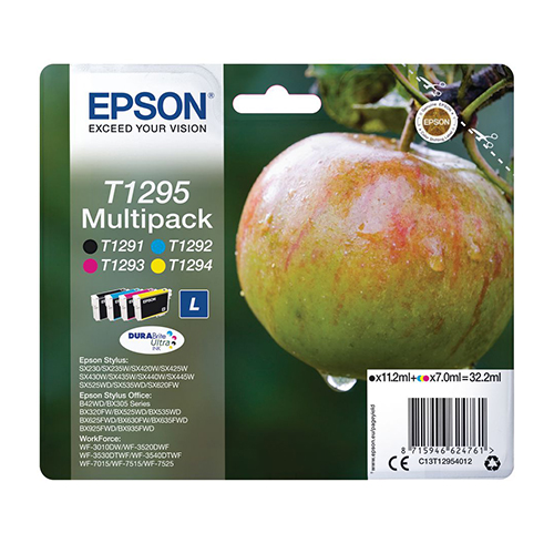 Ref. Fabricante: C13T12954010Número: T1295Capacidade: Preto - 11,2ml | Cores - 7mlCores: Pack com Preto, Magenta, Cyan e AmareloCompatibilidades