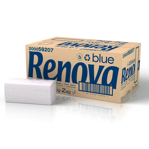 Ref. Fabricante: 200058207Modelo: Blue Zig-ZagCamadas: 1Cor: BrancoDimensão da Folha: 220x107mm (dobrada)Quantidade por Maço: 200 toalhasQuantidade por Caixa: 20 maços (4.000 toalhas)As toalhas de mão em folha Renova, são indispensáveis para a secagem das mãos.Oferecem maior capacidade de absorção e garantem a máxima higiene.A gama Blue distingue-se por:- Folha simples.- Funcional e económica.- 100% Papel reciclado- equilíbrio entre o bom desempenho e o ambiente.