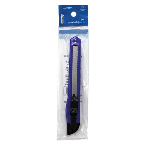 Ref. Fabricante: X9Lâmina: 9mmCor: Vermelho ou AzulEmbalagem: Blister com 1 unidade- X-ato funcional e prático- Lâmina em aço inoxidável- Corpo em plástico- Corte preciso- Boa qualidade dentro da gama económica- Dispositivo de segurança